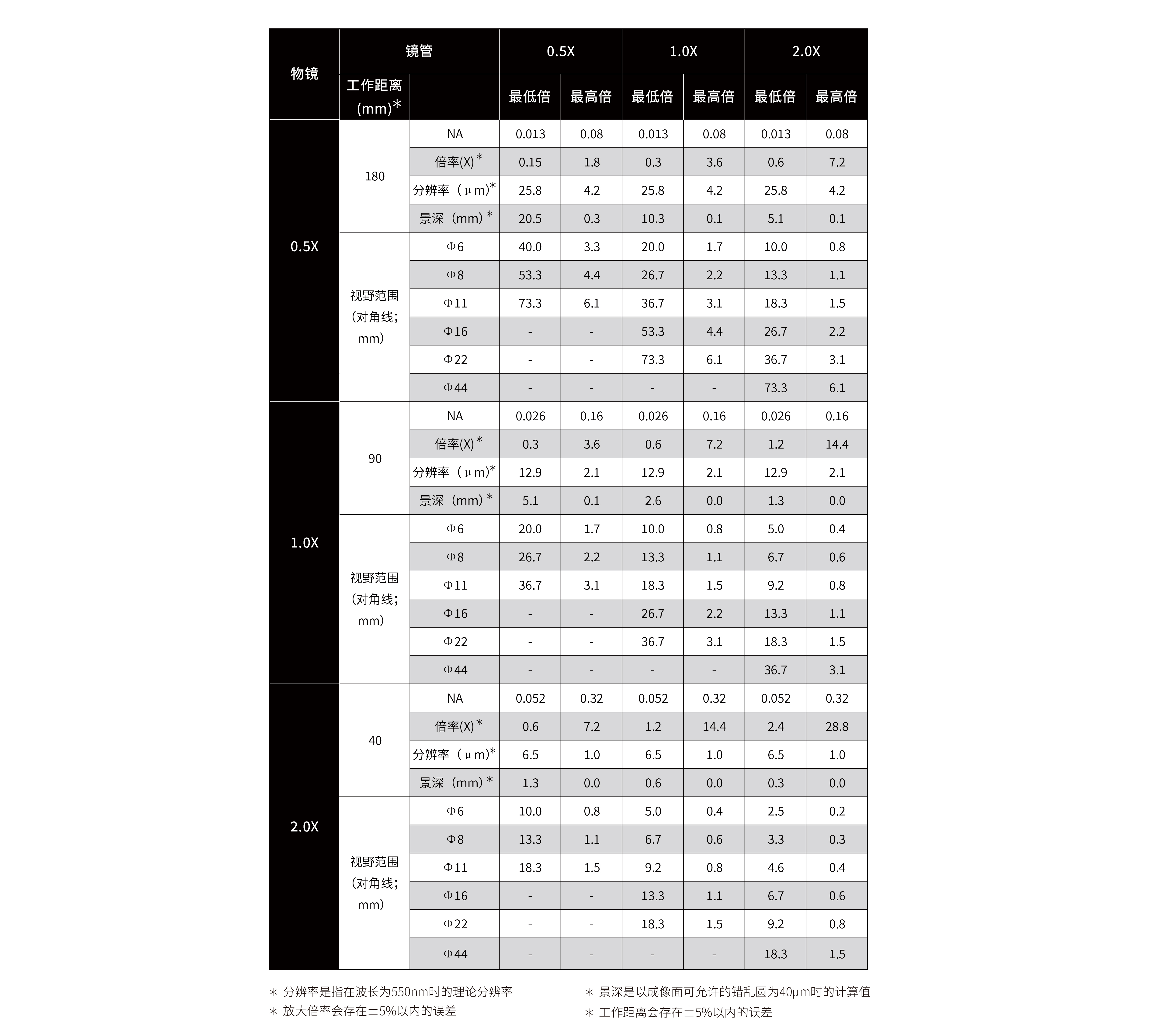 Φ44靶面相机下,最高倍率分辨率达1μm